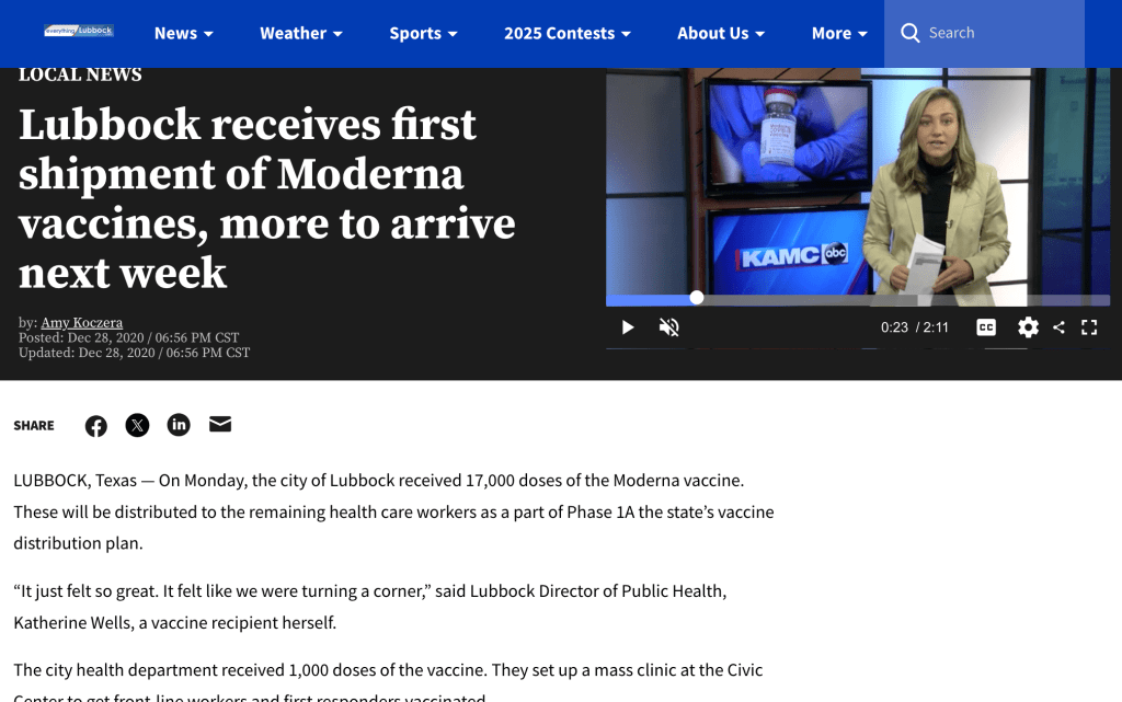 • Lubbock receives first shipment of Moderna vaccines, more to arrive next week