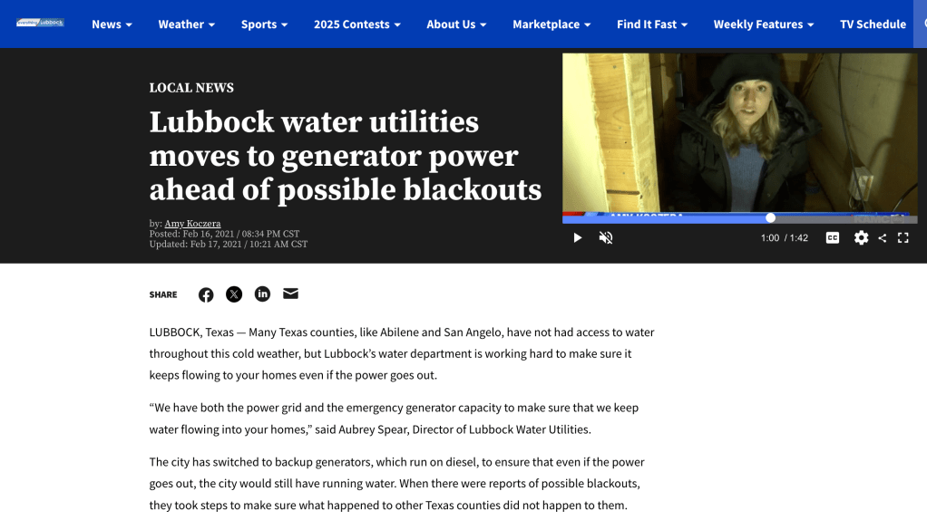 The city has switched to backup generators, which run on diesel, to ensure that even if the power goes out, the city would still have running water. When there were reports of possible blackouts, they took steps to make sure what happened to other Texas counties did not happen to them.